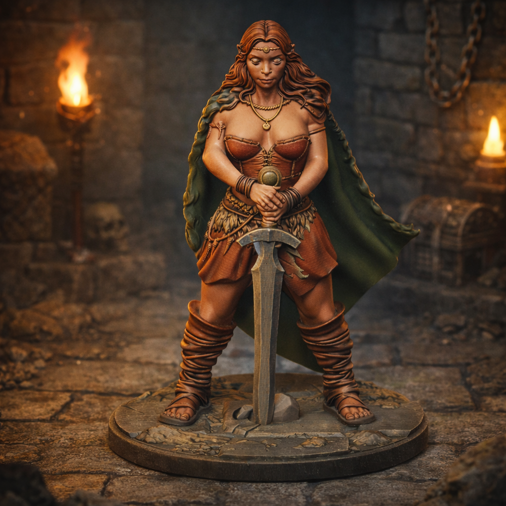 Denne miniatyren passer utmerket som hærfører, livvakt, rival eller spillerkarakter i 28–32 mm fantasy-rollespill. Den rolige, kontrollerte posituren gir en sterk tilstedeværelse på bordet.