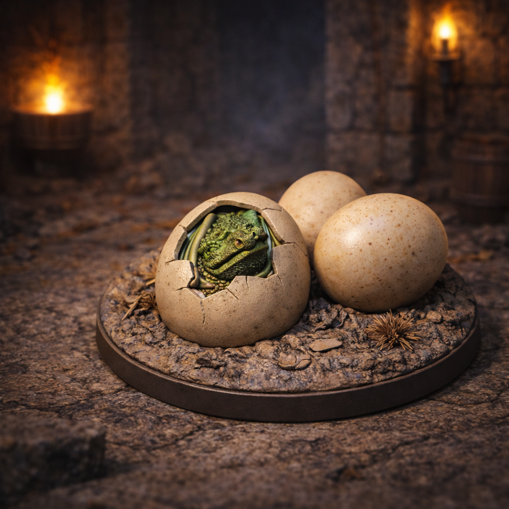 Drage-egg er en detaljert 32 mm Heroic-miniatyr – perfekt som stemningsskapende terreng, quest-objekt eller dramatisk fokuspunkt i fantasy-rollespill.