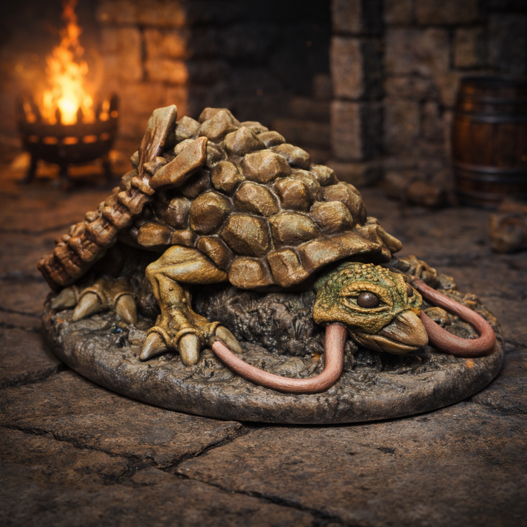 Giant Snapping Turtle er en 32 mm Heroic D&D-miniatyr – perfekt som massiv sumpvokter, elvemonster eller farlig vandrende trussel i fantasy-rollespill.