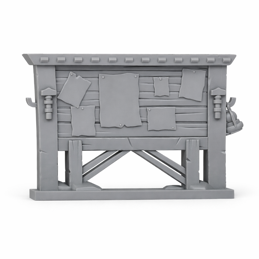 Denne oppdragstavlen er et ikonisk tilbehør for fantasy-terrain, designet for å fungere som et naturlig samlingspunkt i rollespill. Tavlen passer perfekt i byer, landsbyer, vertshus, markedsplasser og laugshus, og fungerer som et visuelt verktøy for å introdusere oppdrag og historie.