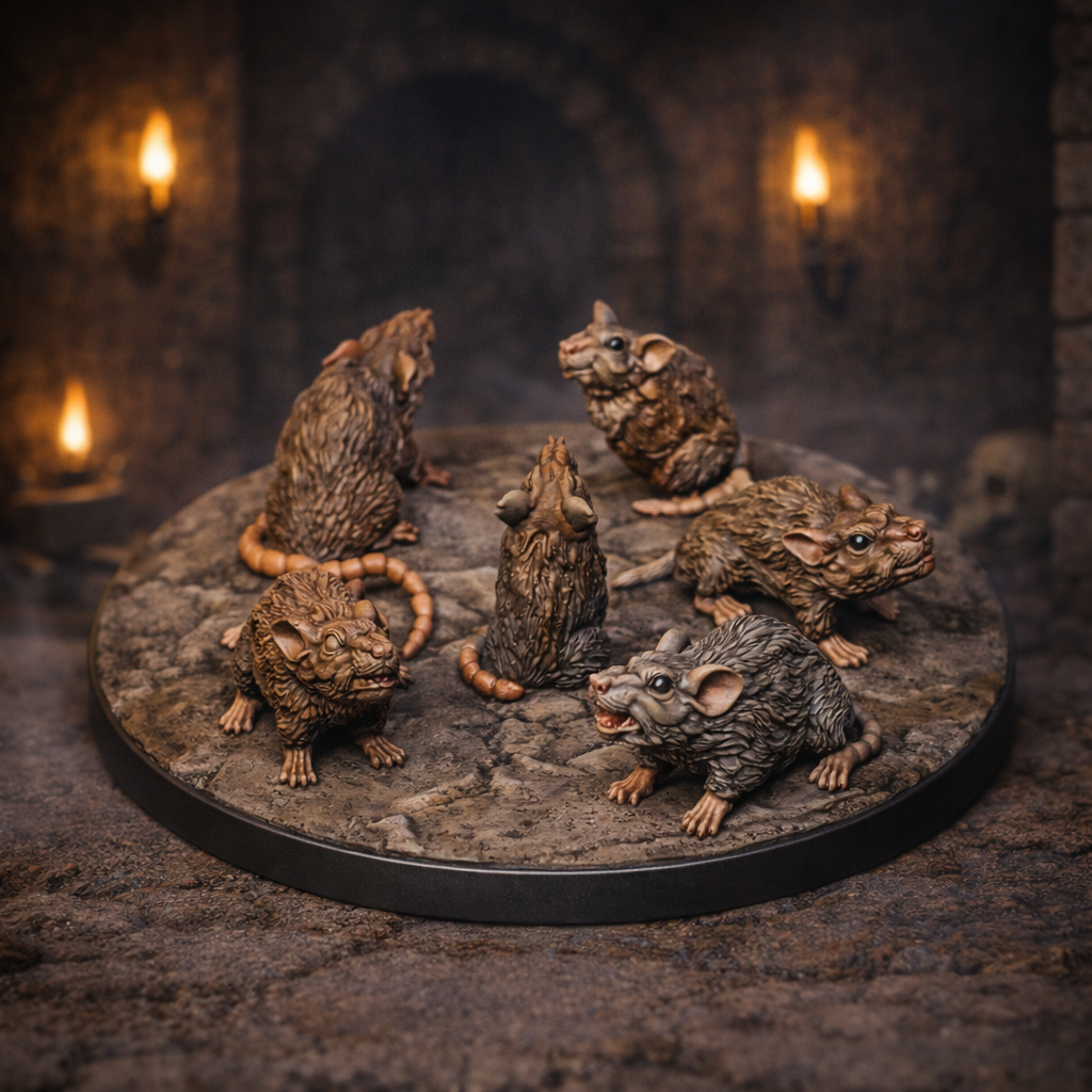 Swarm of Rats er en 32 mm Heroic D&D-miniatyr – ideell når du vil fylle brettet med en krypende, kaotisk trussel.