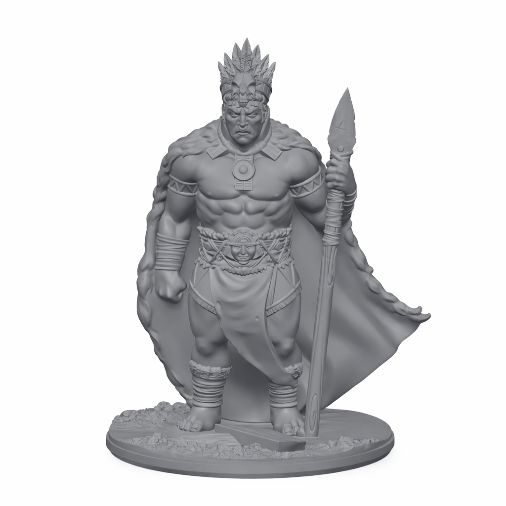 Tribal Warrior er en kraftfull kriger i 32 mm Heroic scale, utstyrt med spyd og kappe. Perfekt som stammeleder, elitekriger eller viktig NPC i jungel-, øy- eller villmarkssettinger.